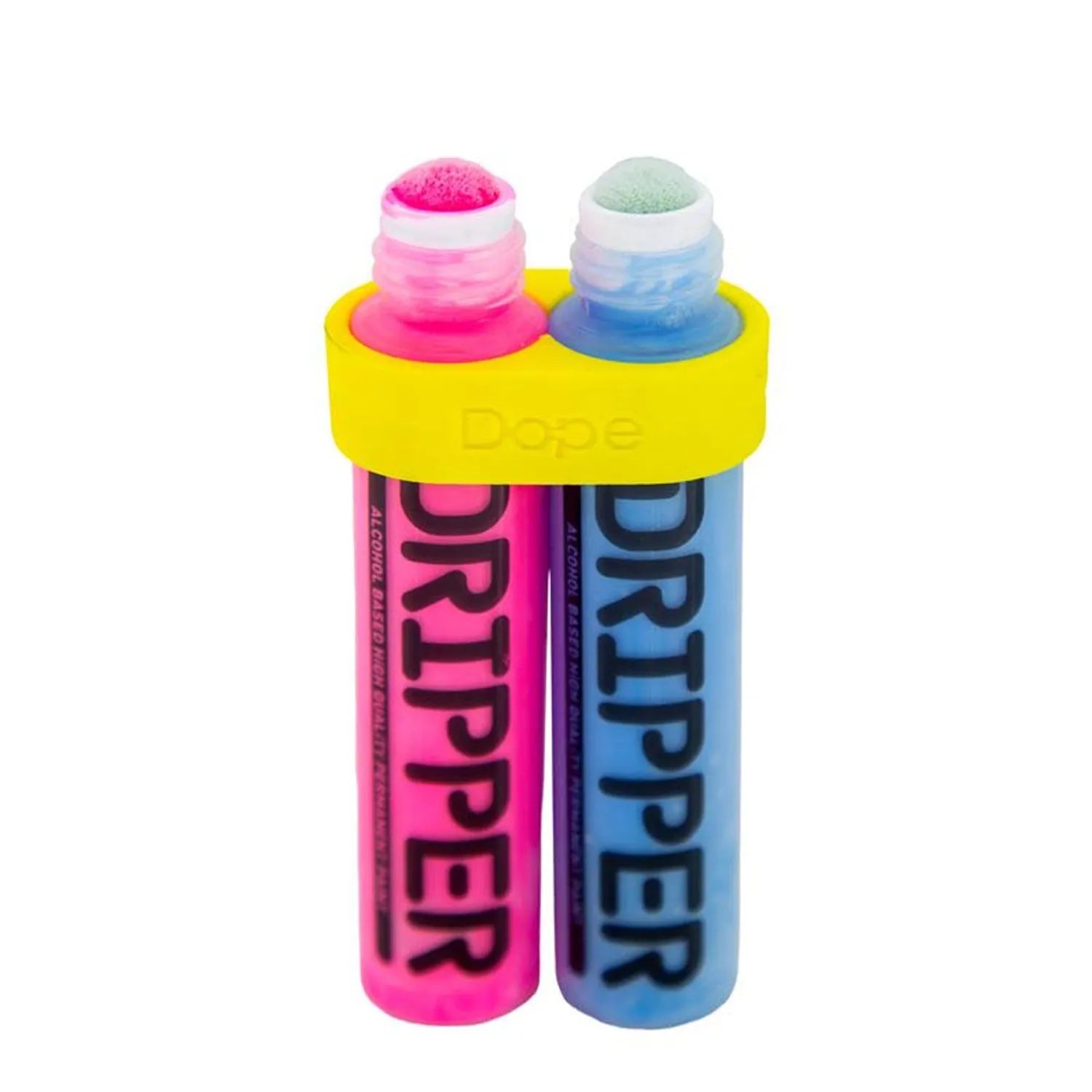The Dope DUO is an adapter for connecting 2 Dope Dripper markers (10mm). This allows you to write in 2 colors at the same time!