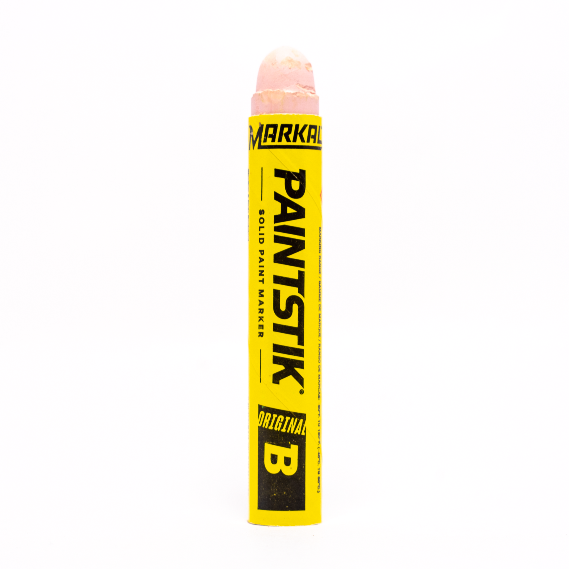 As Markal's most versatile and economic marker, the Paintstik Original B solid paint marker combines the durability of paint in the convenience of a crayon. The real paint formula has superior marking performance on oily, icy, wet, dry or cold surfaces and is weather- and UV-resistant. This Paintstik works on rough, rusty, smooth, or dirty surfaces.